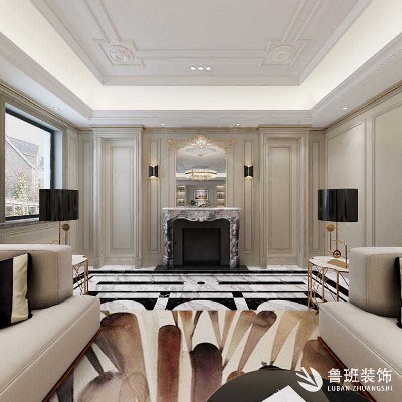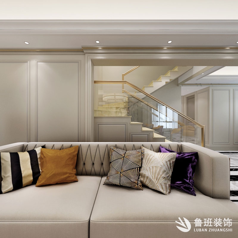 美式輕奢風格是歐式裝修風格的一種,多以御品黃、象牙白等為主色調,以淺色為主深色為輔。相對于濃厚的美式風格,美式風格為清新、符合中國用戶內斂的審美觀念。而且秉承了時尚、環保的理念,一般使用的板材要達到歐洲E0或者E1級,使用的板材材料有原態木香板和中纖板。直接可以放置在室內使用的家具。其實美式風格是一個相對比較模糊的概念,和歐式風格的最大區別在于色調和羅馬柱的區別,駢棄了一般花哨的修飾。整個房間的畫面感,簡約統一。客廳采用灰色護墻和金屬材質提升質感,優雅不失大氣。