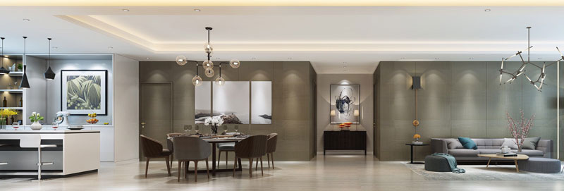 案例是龍湖舜山府的一戶大平層案例,為現代輕奢風格。輕奢風定調的設計居宅中,不可或缺的重要元素。設計師以木元素,大片留白,或是大片灰色系色彩鋪墊,能在色覺感官上,充分體現出大平層的戶型優勢和高端氛圍。看似帶著淡淡的隨意,但屋里的每一個陳設布局,都是出自設計師精心的安排。